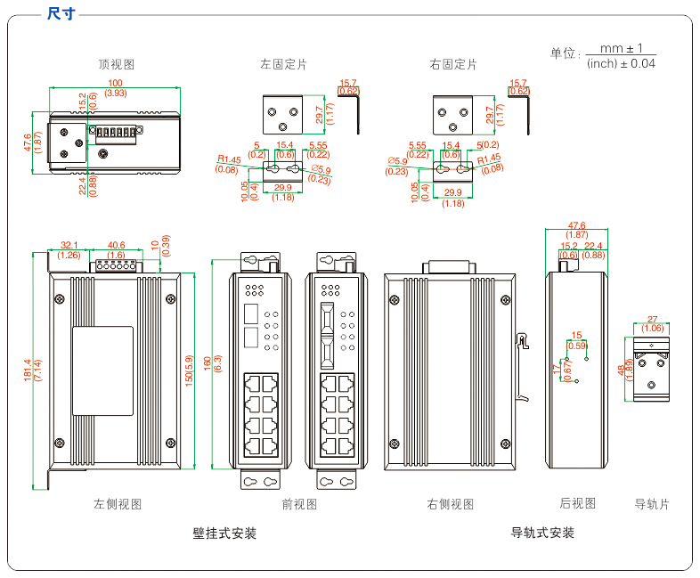| 安裝方式 | 導(dǎo)軌式安裝或壁掛式安裝 | |